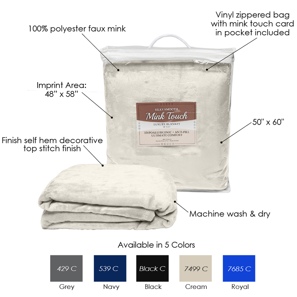 - Material: MINK TOUCH LUXURY BLANKET - 50" X 60"