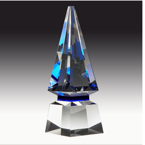 New Premium Optical Crystal Blue Spire Award Trophy