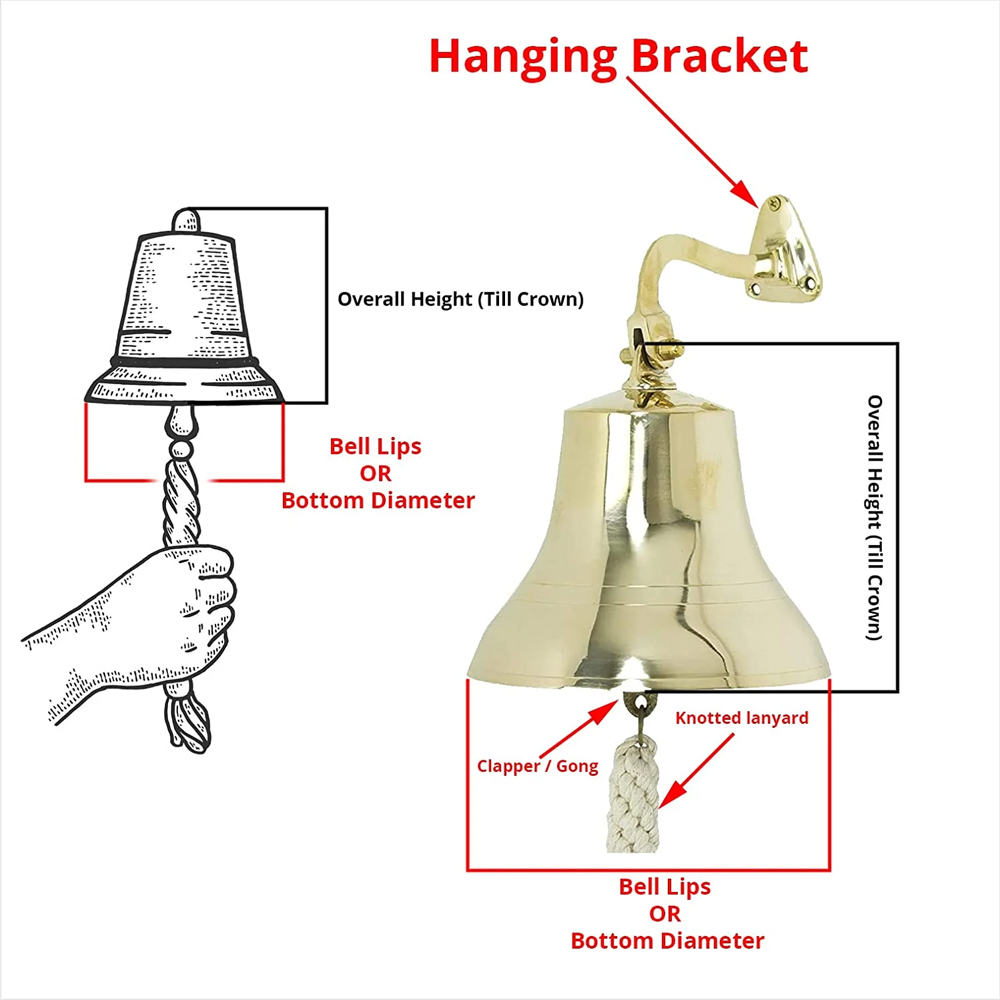- Measurement: Bell Only:6" Height X 6" Diam. , Bell Height with Bracket: 9"Height, Weight :2.5 Lbs